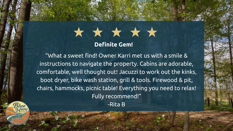 Open year round, Blue Highway Lodge is a special place for anyone who enjoys the beauty of nature and the privacy of their own cabin in the woods. Conveniently located just off state highway 82 and just minutes from restaurants, shopping and some of the most beautiful scenery in the Midwest, Blue Highway Lodge is truly a unique destination for everyone who loves the Driftless Region.