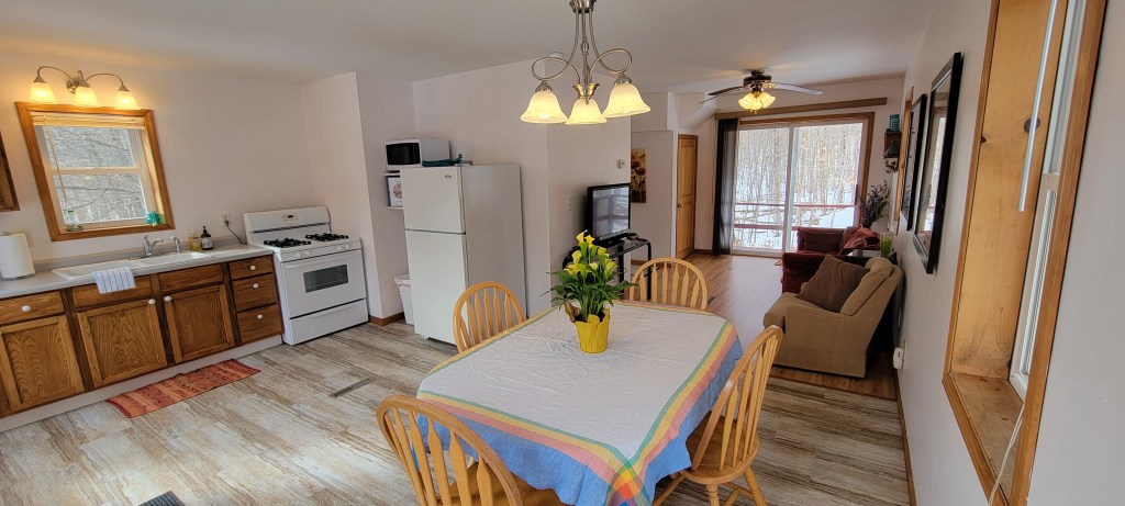 - Toaster, microwave, full size refrigerator, gas stove and oven